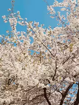 "Imagine just walking along these winding paths with cherry blossoms hanging all over you, like a pink and white roof. The air smells sweet, and the sunlight peeking through makes everything look really pretty. You can wander around and find different spots in the park where you can see the flowers and also get some nice views of the city and the ocean in the background. It's a bit different from just seeing flowers in a flat park."