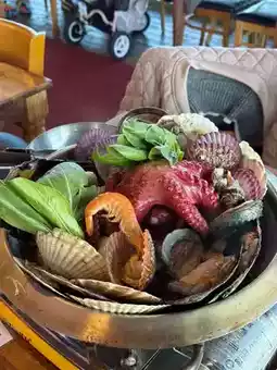 They also sell grilled clams and raw clams, but I especially recommend the clam stew because it looks amazing. A whole octopus is put on it, and there are a lot of seafood such as scallops, abalone, shrimp, and conch.