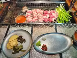 The texture of the Kurobuta pork is delicious and so fragrant 😍💜. I drool every time I look at the photos. There are quite a variety of side dishes provided (it’s a bit small but unfortunately there is no lettuce). I also ordered a bowl of steamed egg, but forgot to take a photo 😂. The steamed egg here is not like the usual Korean steamed egg, it is more like the usual steamed egg made at home (the surface is smooth)