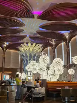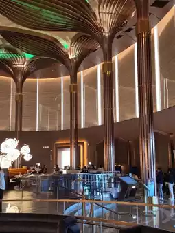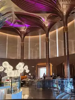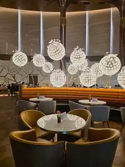 The floor-to-ceiling windows provide a stunning view outside, transforming the lounge into a sunlit, warm space during the day and a cozy, atmospheric area under beautiful lighting at night. The art pieces and furniture displayed throughout the lounge are worth admiring, adding a touch of sophistication to the space. Every detail feels thoughtfully curated, making your time here truly rejuvenating.