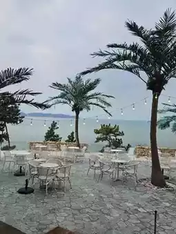 The 2nd floor features more spacious seating and is also pet-friendly. The 3rd floor is a no-kids, no-pets zone, recommended for those seeking a quiet retreat. The view of the ocean from the 3rd-floor terrace is truly exotic, making it a fantastic spot for taking memorable photos with family.