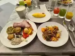 I joined breakfast. The grilled chicken was delicious, as were the salmon steak and tomahawk. The truffle risotto was also enjoyable. The omelets and bakery items were good, and while there were no melons or mangoes, watermelon was available.