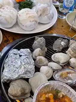 As night falls, head to a nearby seaside restaurant for grilled shellfish! The smoky aroma of freshly grilled seafood paired with a refreshing beer completes the flavors of your trip. 🦪🔥🍺