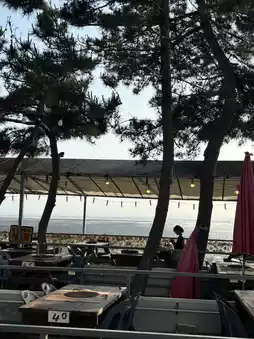 There are plenty of seats with beach views, and sitting on the terrace is absolutely delightful.