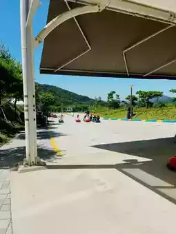 Upon arriving at Ganghwa Luge, you need to purchase tickets at the ticket booth located at the foot of the mountain. I opted for a single ride ticket, while my child chose a three-ride ticket. After buying tickets, you’ll select a helmet that fits your head size and then take the cable car up the mountain. At the top, the staff will carefully explain how to control the luge and use the brakes (staff can speak Korean, Mandarin, and English). There are fast and slow tracks available, so you can choose the speed that suits you best.