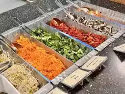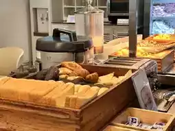 It offers appetizers, hot dishes, main courses, desserts, cold dishes, and unlimited wine and beer, making it a great pre-departure dining experience.