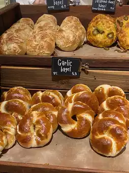 In addition to the most popular potato bagel, I also bought a basic bagel, garlic, onion, and honey cheese bagel☺️