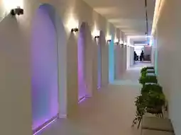 The indoor water plaza pool is 1.3m deep and has an antique atmosphere inspired by the motif of the Piazza Venezia, and is surrounded by LED screens, so you can also experience a virtual sauna