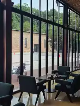 There is a spacious cafe & restaurant outside the exhibition hall, so you can enjoy a leisurely tea time or brunch while finishing off the exhibition. Take a break with dessert and coffee in an atmosphere with natural lighting and a forest view.
