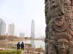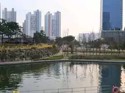 The scenery at Songdo Central Park in Incheon, where the buildings, sky, and tree shadows reflected on the water's surface blended together, was truly beautiful. The park had well-maintained walking paths, including wooden decks and gravel paths, offering a variety of textures. Along the paths, weeping willows hung gracefully, and seasonal flowers like azaleas and spireas were blooming here and there, making the walk visually delightful.