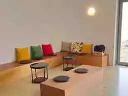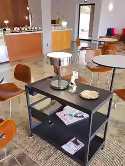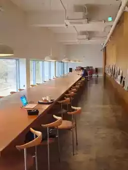 The tables are spaced widely apart, providing a private space for quiet sitting. Sitting by the window allows sunlight to gently diffuse the floor, creating a warm, inviting atmosphere.