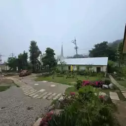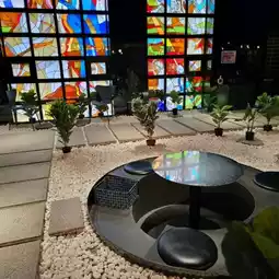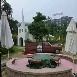 We visited the Made Dream Cafe in Yeongjongdo, a popular photo spot that was remodeled from an old church. The cafe's interior features a stylish and unique design with walls and stairs adorned with stained glass, creating a stunning atmosphere.