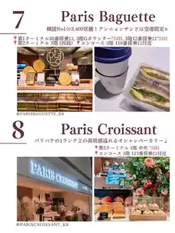 7. Paris Baguette: This is Korea's largest bakery cafe. Don't forget to pick up the Annyeong sandwich, available only at Incheon Airport, as a souvenir.