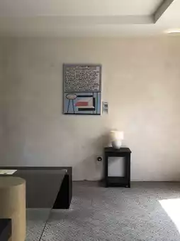 The interior, reminiscent of the 1970s, feels like a small gallery,