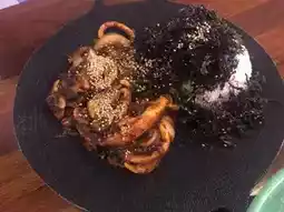 The "choco" in this restaurant's name refers to the deep, rich flavor of squid intestinals.