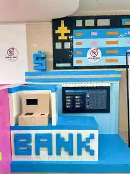 This kids' corner features a cute, block-style replica of airport facilities. 💓
