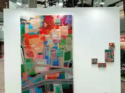 Although the airport is bustling, the exhibition aims to provide a moment of reflection for travelers. As intended, people pause to take photos in front of the artworks, drawing closer to the paintings and engaging in interpretation.
