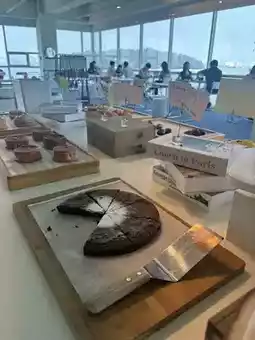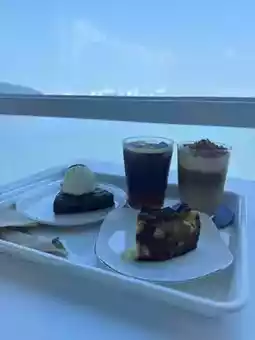 The brownies on the dessert shelf were crunchy and had a rich chocolate aroma, making me feel good just looking at them. I tried an Ashatsu, and the sweet and bittersweet flavor paired perfectly with the ocean view, enhancing my travel mood. ☕🍫
