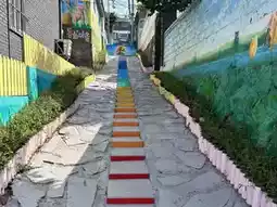 I decided to travel solo by chance, and before leaving, I made a last-minute decision to visit Songwoldong Fairy Tale Village, located near Incheon Station on the outskirts of Seoul! I spent the entire day there, enjoying all sorts of cartoon themes and adorable designs everywhere. I snapped photos non-stop with my selfie stick, and was constantly surprised and amazed along the way! It was truly fun!
