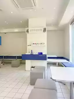 With a clean white and blue interior concept, one side of the cafe features large windows, making it perfect for enjoying the view outside. On sunny days, the sunlight streams in, making it a 'sunlight hotspot.'