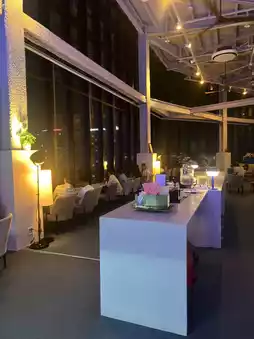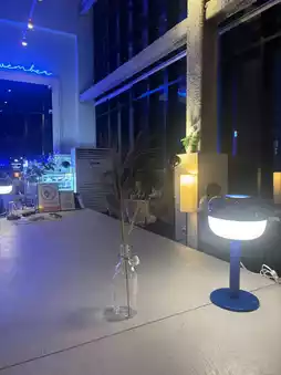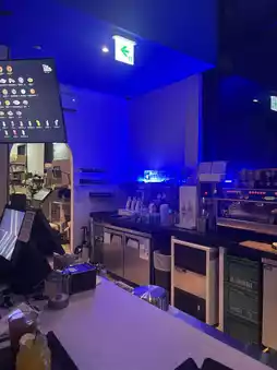 The interior is elegantly designed with white and blue tones, giving off the sophisticated vibe of a foreign hotel lounge. The seating is well-arranged in the high-ceilinged space, allowing you to relax and enjoy the atmosphere. The drinks are served neatly, making it a great spot for light conversations, reading a book, or even working solo.