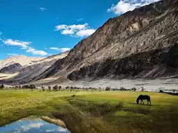 Nubra Valley is an awesome and beautiful hidden gem in Ladakh! 🌄 Known for its breathtaking landscapes, the valley offers sand dunes, snow-capped mountains, and lush green valleys. Ride Bactrian camels 🐫 in Hunder, explore the Diskit Monastery 🏯, and enjoy the serenity of the Shyok and Nubra Rivers 🌊. With its starry skies 🌌, unique culture, and peaceful ambiance, Nubra Valley is a true paradise for adventure lovers and nature enthusiasts. 🌏✨