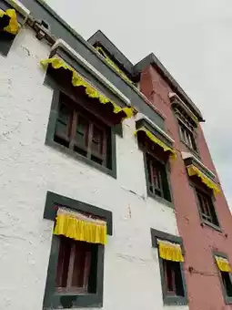 Inside, a golden Maitreya Buddha statue over three meters tall and colorful thangkas (Buddhist paintings) are enshrined, creating a solemn atmosphere.