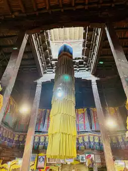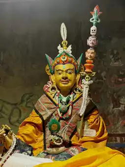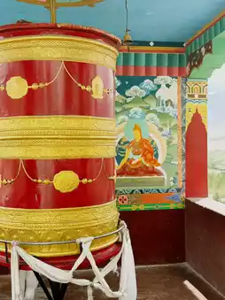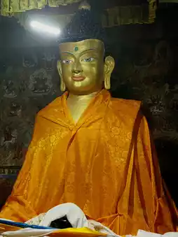 The temple grounds house a gigantic statue of Guru Rinpoche (Padmasambhava), the monk who spread Tibetan Buddhism in Ladakh. Its shining golden form seems to bestow a sense of quiet security and protection upon visitors.