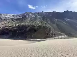 The trip to the Hunder sand dunes in Nubra Valley was one of the more surreal experiences I’ve had. After driving through the dramatic mountain roads and high passes of Ladakh, suddenly arriving at a stretch of desert with fine sand felt almost unreal. The dunes sit right between rugged mountains and the Shyok River, so the contrast of landscapes is striking — snow peaks in the distance, river flowing nearby, and then these soft rolling dunes in the middle.