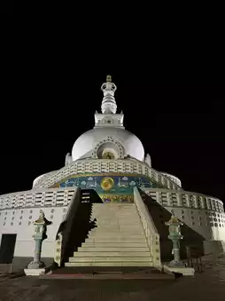 As the sun sets, the white stupa is illuminated, creating a mystical glow. It's especially recommended at night as a spectacular spot overlooking the city of Leh's nightscape. 💡 Enjoy a moment of prayer and peace in the tranquil air.