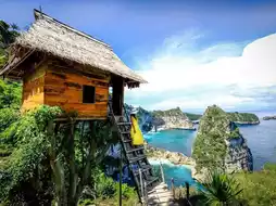 Rumah Pohon Tree House is a renowned accommodation and photo spot located on the east coast of Nusa Penida, Bali, Indonesia. Perched atop a cliff near the Thousand Island (Pulau Seribu) viewpoint, it offers panoramic views of the ocean and surrounding islands, making it a favorite among travelers and photographers.