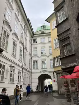 The **Golden Roof (Goldenes Dachl)** in the heart of the Old Town is a masterpiece of medieval architecture, and the snowy mountain view from the square in front of it is a must-see photo spot. Don't miss the ornate Baroque facade of Helblinghaus and the impressive stained glass inside the Dom zu St. Jakob (St. James Cathedral). The city is compact, so every alley is a sight to behold. The view of the Alps from near the Annasäule (St. Anne's Column) is particularly open and offers a majestic panorama of the mountain range.