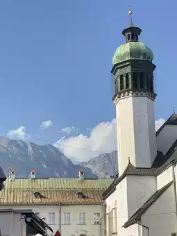 Stopped for a break at Hofgarten, a peaceful green park perfect for relaxing, watching the trees, and observing people 🌳🪑. Nearby, I visited Innsbruck Cathedral. Its exterior is simple, but the interior is stunningly magnificent ✨⛪.
