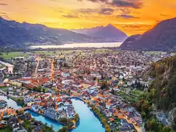 Interlaken is a beautiful tourist city in Switzerland, located in the Canton of Bern. Nestled between two lakes, Lake Brienz and Lake Thun, it serves as a gateway to the Alps, particularly the Jungfraujoch peak.
