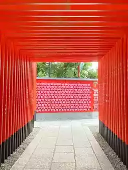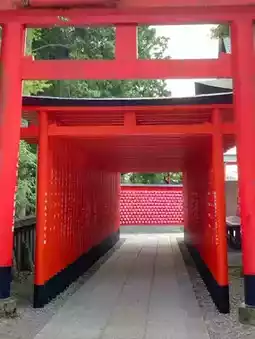 Did you know there's a wonderful spot next to it, where a red torii gate stands out against the blue sky?
