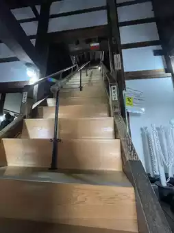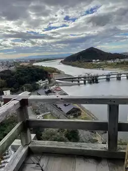 Inside the castle, you can see various fortifications from the past, such as stone steps and turrets, as well as a steep staircase that slopes at a 60-degree angle, giving you an idea of the difficulty of attacking the castle. The top floor observation tower is walkable, offering stunning views of the Kizugawa River and Mount Ontake. However, the railings are incredibly low, only reaching about knee-high, which is incredibly scary.