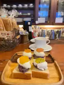 Freshly baked toast with red bean paste, plenty of cream, and fruit jam 🍊🫐🥝