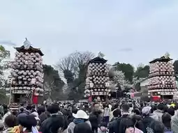 During the day, the highlight is the mechanical puppet performances on the floats. The intricate mechanisms, operated by human power, give a glimpse of the craftsmanship of the past. Food stalls and street vendors line the streets, allowing you to fully enjoy spring in Inuyama while sampling local cuisine.