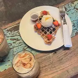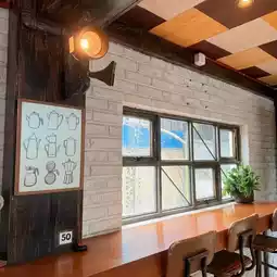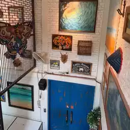The interior decor is a delightful array of eclectic artwork and creative touches that make every corner Instagram-worthy. The walls are adorned with vibrant paintings and rustic elements that blend modern chic with cozy comfort, creating an inviting atmosphere for all who enter.