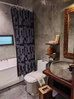 Each room is beautifully designed with traditional Balinese elements, featuring wooden furnishings, intricate carvings, and lush greenery views. Guests can unwind in their private balconies or enjoy a soothing spa experience to complete the tropical getaway.
