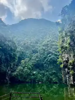 A stunning natural doline lake set amidst towering Gunung Rapat limestone hills in Ipoh. Its glassy surface perfectly mirrors the cliffs and jungle—a paradise for photographers and nature lovers.