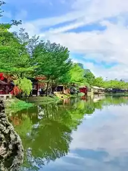 Beyond the cultural exhibits, Qing Xin Ling is a nature lover's paradise. The village is centered around a tranquil lake, with serene pathways and bridges that offer stunning views of the surrounding limestone cliffs. The lush greenery and fresh air provide a peaceful escape from the bustling city. You can find beautiful spots to relax, take photos, and simply enjoy the serene environment.