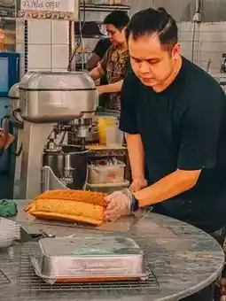 The cake was soft, moist, and layered with the natural sweetness and fragrance of cempedak. It had that distinct tropical flavor—slightly stronger than jackfruit—balanced with just the right amount of creaminess. Each slice felt indulgent yet comforting, the kind of dessert that lingers in your memory long after the last bite. Pairing it with a cup of their local white coffee made it even better—a perfect marriage of rich flavors.