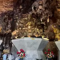 Behind the cave, there’s a stunning garden with a lake and walking paths surrounded by greenery. It’s so scenic and relaxing, great for taking photos and enjoying nature. 🌳📸 The combination of spiritual vibes and natural beauty makes this temple truly special.