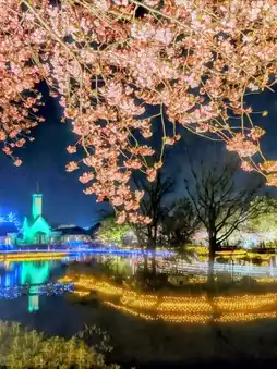The cherry blossoms at Nabana no Sato were in full bloom and stunning. The illuminations were also beautiful.