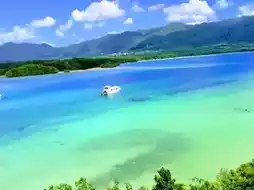 Kabira Bay is about a 30-minute drive from Ishigaki City's downtown area. If you plan to access it by public bus, it's better to go in the morning as the bus schedule is less convenient later in the day. I personally took an electric scooter and spent about 90 minutes getting there. During my previous visit, the weather was cloudy, but this time it was incredibly sunny. Initially, I had planned to visit the next morning by bus, but since the weather forecast wasn't promising, I decided to go immediately—and it turned out to be a great decision. The scenery was breathtaking, and it's likely that such beauty is hard to appreciate without good weather. Swimming is prohibited at Kabira Bay, but you can enjoy activities like glass-bottom boat tours. There are also cafes and souvenir shops, making the area quite lively.