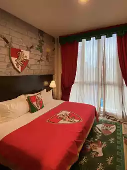 I stayed in a Kingdom-themed room, which was decked out with whimsical medieval details, from shield motifs to treasure chests and a dedicated bunk-bed area for kids. The room felt like a themed storybook brought to life, with clever touches like a LEGO building station and an in-room treasure hunt that kept the excitement going well into the evening. The separate sleeping area for children, complete with their own TV, was a thoughtful touch that added comfort and privacy for families.