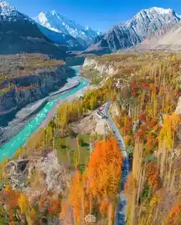 Visiting Hunza Valley in autumn was one of the most breathtaking travel experiences I’ve ever had. From late September to early November, the entire valley transforms into a golden wonderland, with apricot, poplar, and cherry trees turning brilliant shades of yellow and orange. The contrast between the autumn foliage, snow-dusted peaks of Rakaposhi and Ultar Sar, and the deep blue sky is simply magical.