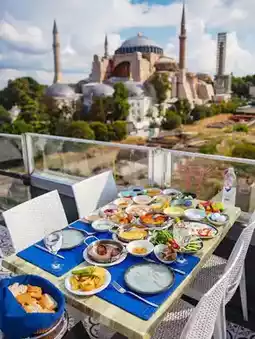 How about you start your day with a hearty Turkish breakfast spread, a true delight and with the most famous view in
