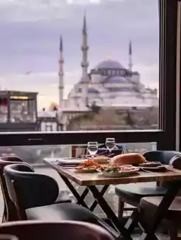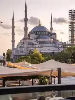 Istanbul? Visit the terrace with 360 degree view to the most beautiful spots in Sultanahmet. You can enjoy the view of Blue Mosque, Hagia Sophia and Bosphorus.